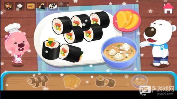 相信很多人都喜欢loopy这个可爱的卡通形象,今天要给大家介绍的就是一款关于loopy的游戏,名字叫做pororo cooking game,中文名字是波鲁鲁料理,在游戏中玩家可以体验到完整的烹饪乐趣,游戏画面采用了精美的卡通形象,在游戏中玩家需要和波鲁鲁一起完成烹饪菜品,一起经营这家美食店,游戏提供了多种菜单,包含了各种丰富的小吃和料理,像寿司,小吃,甜品等,满足您的各种喜好。