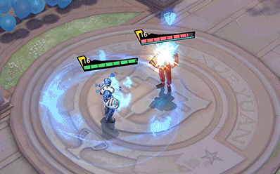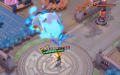 红孩儿退后蓄力,蓝色的火焰凝聚,随后他冲向敌人,残影犹如巨大的手臂,冲击力则形成硕大的拳头,狠狠地击打在敌人身上。