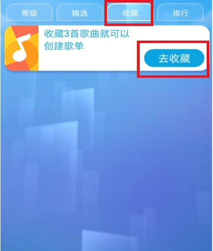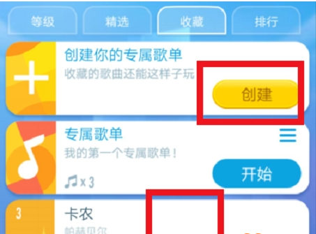 在钢琴块主界面上框,有收藏的白色字样,如果收藏了任意三首,就可以创建歌单。而在每首音乐中只要感兴趣就可以点击心状物标,即可以完成收藏