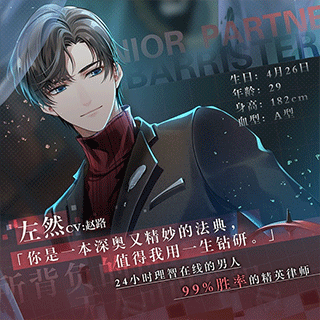 左然,99%胜率的精英律师。他的冷静理智超乎常人,自我要求极为严苛,被媒体评价为“没有感情的辩护机器”。左然习惯于独来独往,除了工作需要之外,基本不和其他人有私下接触。
