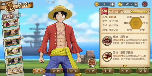 3、招募原著动漫中的强大角色,路飞、索隆、红发等。