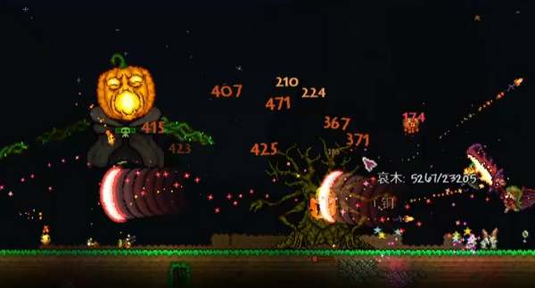 南瓜月召唤后场景类似于日食,在黎明时结束。在事件期间怪物会一直刷新的,而且拥有较高的攻击力和抗性,需要保证击败敌人累计一定分数才能够开启下一个关卡。