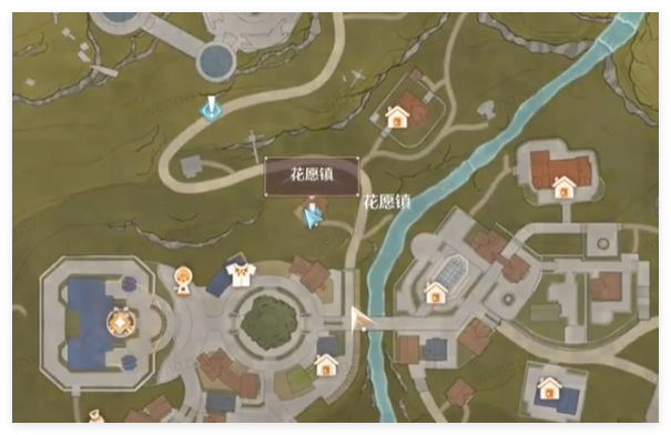 我们可以去花愿镇的【搭配师协会前】传送点,来到这个服装店左转,来到下面的位置就可以去解锁了。