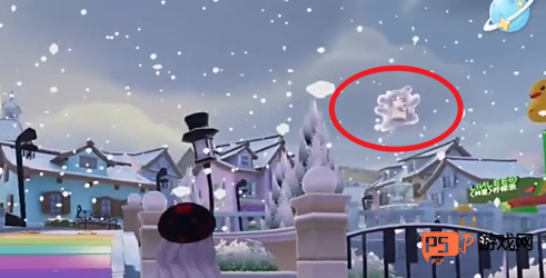 3、前往文艺街找到彩虹音阶地板,找到小狗泡泡,触碰即可获得小金毛托特包。