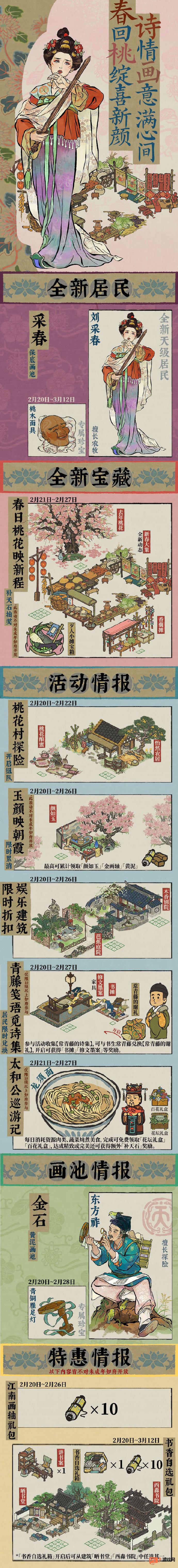 以上就是江南百景图春回活动2月20日起更新一览,更多攻略详情查看PSP游戏网。