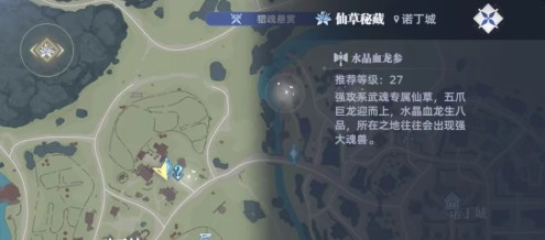 水晶血龙参:位置是在山顶上,不过因为这边地势相对比较高,在获取时有一些难度,要想方便于采集,可以选择具有飞行能力的武魂角色。