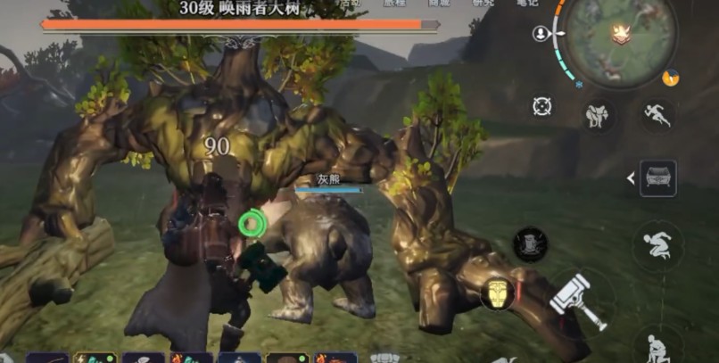 它的普攻技能就是用狩者拿着的树干不断的向敌人挥舞,树干有着高额的攻击力,一旦被碰到的话,那玩家就会受到严重的伤害,大家在攻击boss的时候,可以转着圈的攻击来躲避boss的普攻技能。