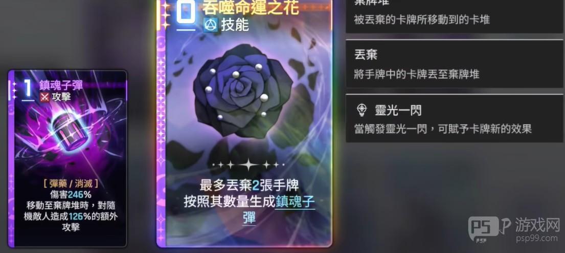 第2张卡牌则是按自身手中所拥有的子弹卡牌数量进行伤害效果增加的,每增加一张卡牌就会增加50%的伤害。在第3张卡牌进行使用时,甚至可以拥有180%的基础伤害,这些卡牌在进行丢弃之后的弃牌效果非常惊人。根据丢弃卡牌的数量,能够随机生成子弹数量,从另一个方面验证了这个卡组中灵光一闪卡牌与子弹机制的多种关系,在增加伤害效果方面会对输出能力给予更多的辅助,黑玫瑰诗人在各项输出能力方面都表现了极佳的效果,不管在什么状态下都能够对敌人造成很高的伤害加成。伴随着黑玫瑰诗人的特技效果设计也充分展示了她的英姿飒爽,就像是黑夜中的玫瑰一样。