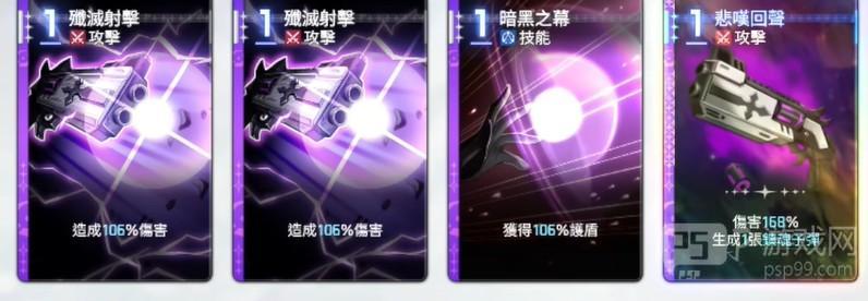 在一开始的游戏中,黑玫瑰诗人就被定义为了虚空猎人的输出类型角色。自带的4张初始卡牌,每一张都拥有极高的伤害倍率,其中有两张拥有100%的伤害倍率,剩下的两张卡牌,一张可以增加自身的护盾值高达100%,最后一张则可以生成100%的输出倍率卡牌,对敌伤害可以瞬间造成140%的强度。在这4张卡牌的表现力上,也充分的展示出了黑玫瑰诗人的高作战强度。
