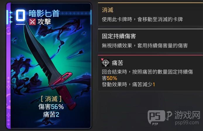 那这里进行生成的时候就是零费的普通匕首了,所以如果要玩奶刀的话,基本上每一把都是去赌能不能拿到暗影上膛的强化版本,拿到之后还不行,至少给他复制一张或者2张,否则匕首数量是不够用的,那么除了变体4以外,小编最推荐的可能就是变体3,这里可以让卡牌治愈108×X,然后生成X张的暗影匕首,也就是说大家每用掉一点的能量,就能拿一张暗影匕首,另外一个值得推荐的是这个二费的群体效果卡,如果选择了这个变体,那大家就需要想办法多弄几张暗影匕首在自己的手里,因为她的基础效能实际上已经比匕首要强了,因为匕首是达到50%数值之后上痛苦,而这个群体的暗影上膛首先基础伤害就多了30%,并且依旧上痛苦,还能解决德蕾莎的缺点,就是她没有办法对群。