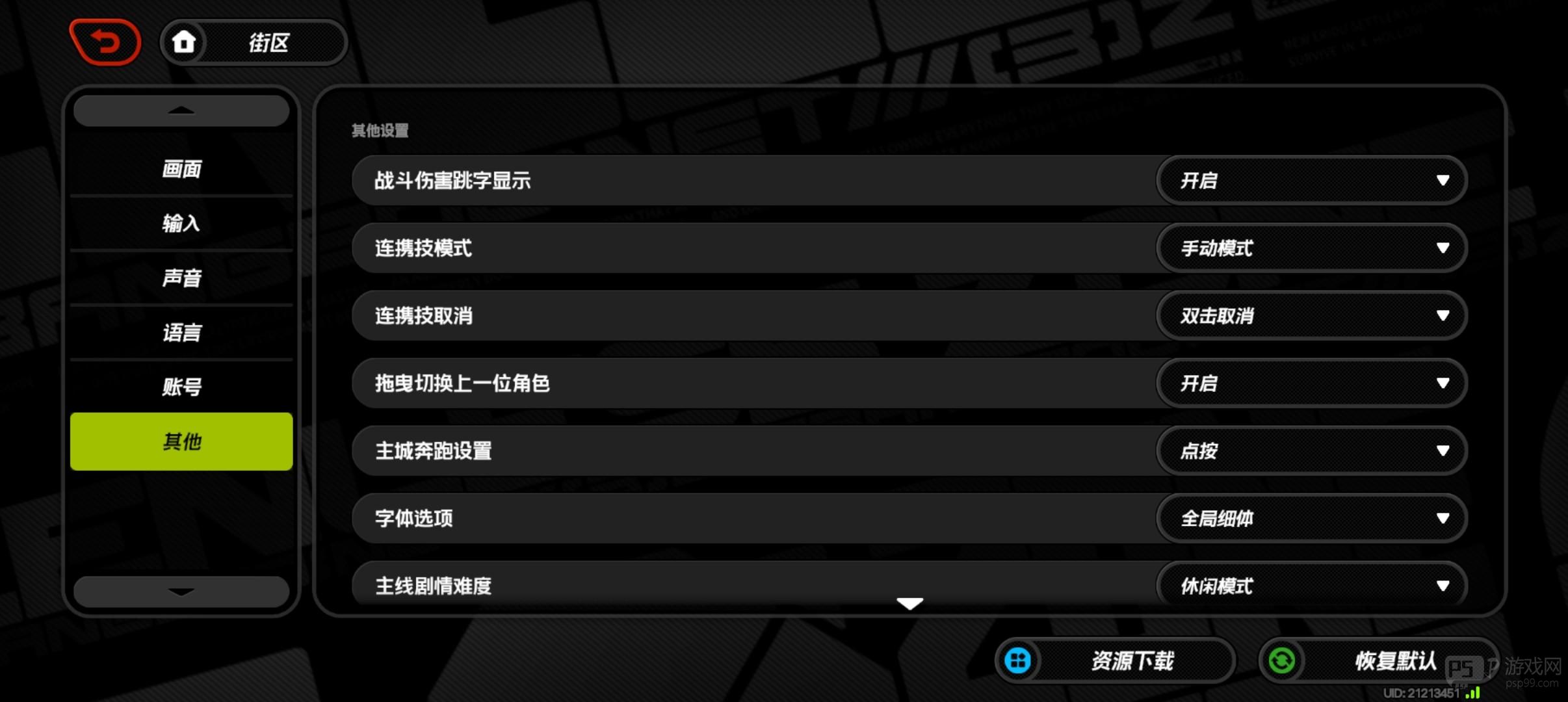 重点在于[渲染精度]和[体积雾]这两项的调整上,前者部分机型[默认高]也不会开启,后者在部分高光场景会使画面变得模糊。如果不想看伤害数字,可在[其他]选项的第一栏关闭。