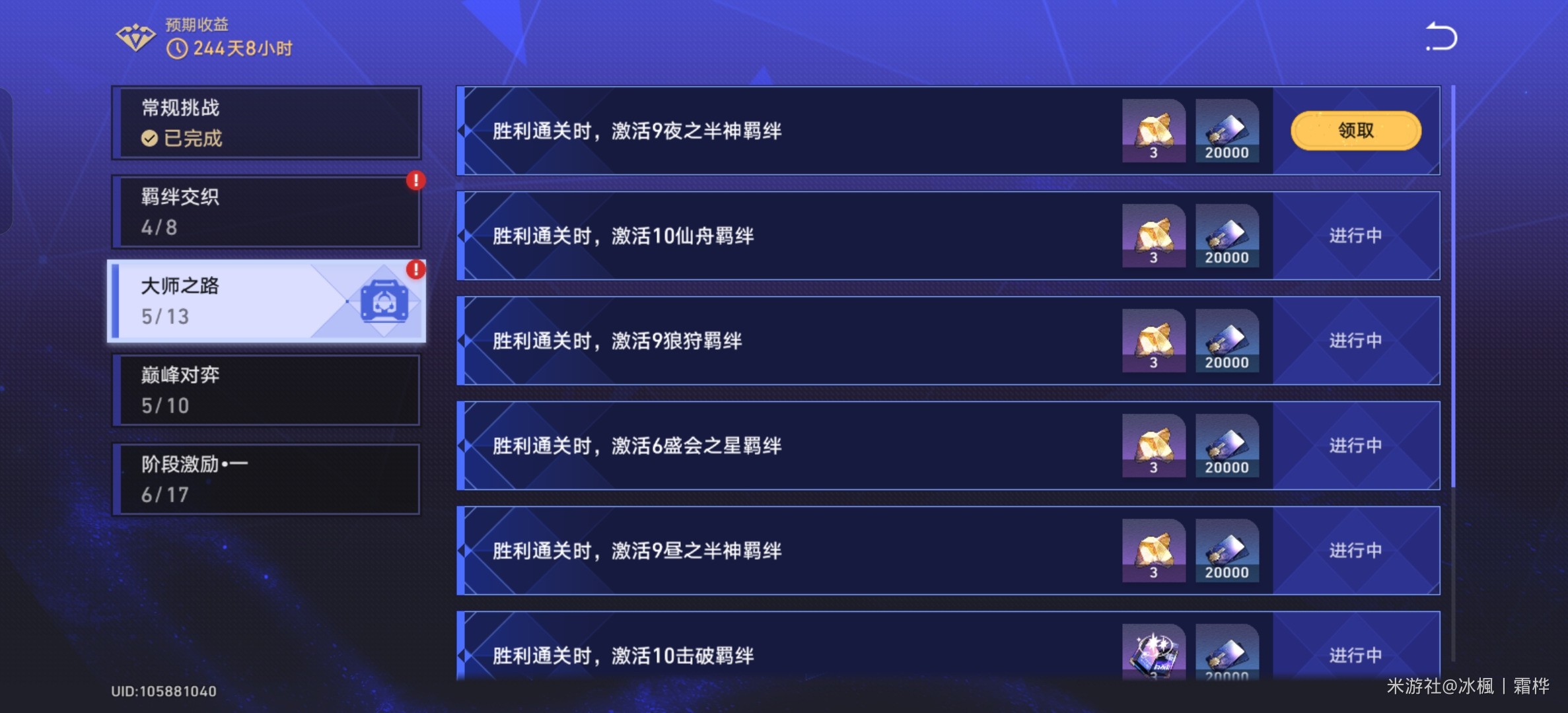 预期收益里的大师之路任务: