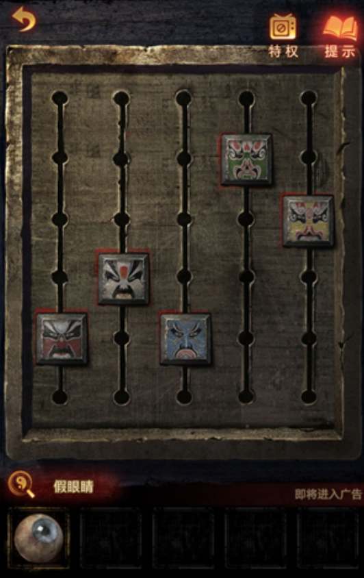 20、把摇把插进戏盒子里,做小游戏,根据图片调整姿势,做完后木偶吐舌头,获得面具;