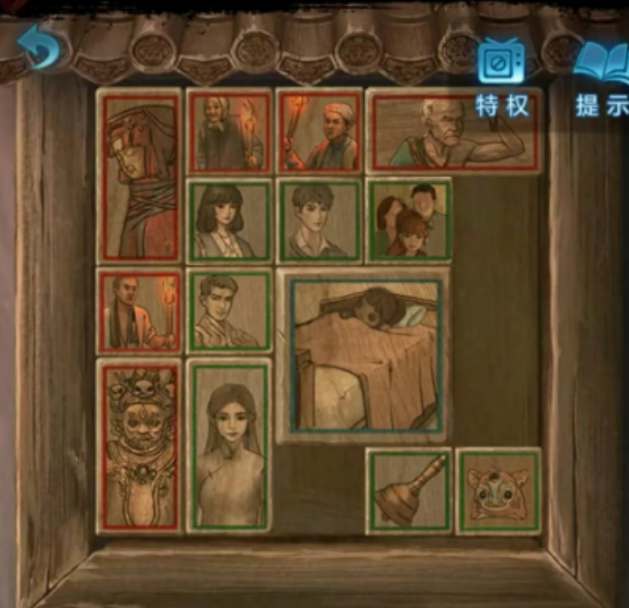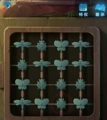 2、再来到陶梦嫣家,在供桌上拾取铁条,根据布偶圈的提示将门上机关调成下图所示可获得糖果。