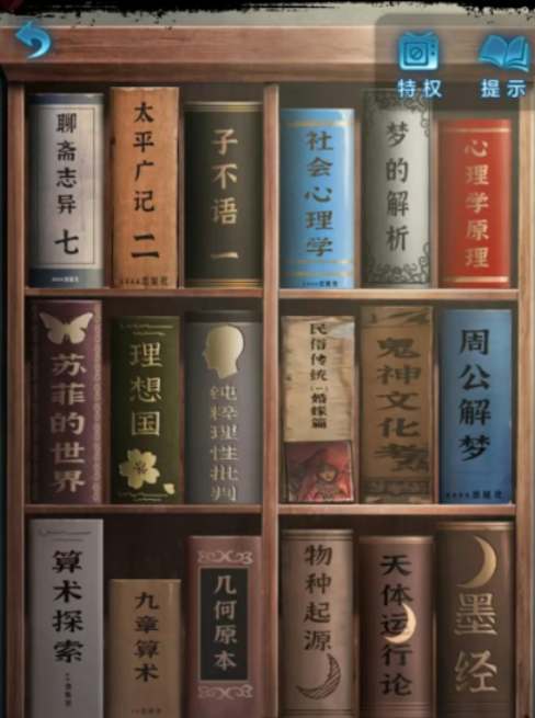 19、回到浮空的门将书摆放在书柜中,按照下图这个样子摆放书籍得到小方块;