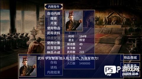 2、在此模式下,可以执行搜索和内务开发等内务命令。每个将军一次只能执行一次内部政策。如果将军出征或者内政期间没有进城,将军将无法再执行内政命令。