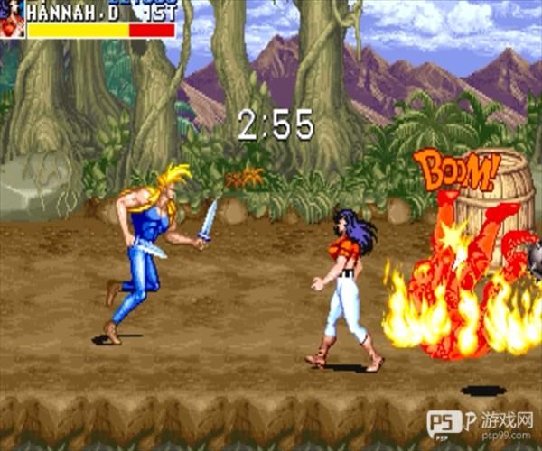 汉娜:女性角色,敏捷型的角色,绝招是旋风腿,虽然攻击弱,但是速度快,非常适用武器,但不擅长空战。