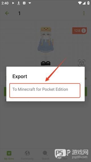 2、选择其中选项,以手机版为例,我们选择用于Minecraft PE的皮肤。
