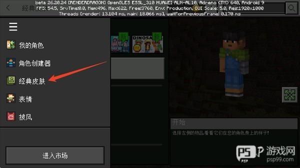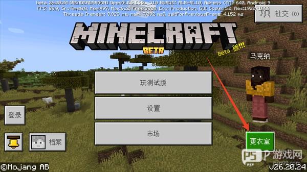4、下一步进入我的世界游戏中,在主界面选择进入皮肤界面。