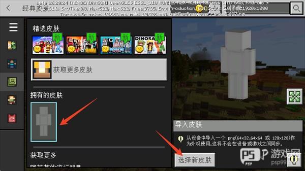 6、点击拥有的皮肤空白处,选择右侧的选择新皮肤按钮。