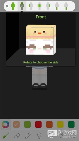 4、也可以选择单独编辑身体某些部位。还可以通过手指滑动来选择编辑皮肤的哪一面或是3D整体预览。