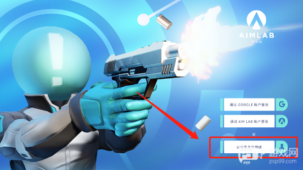 1、打开瞄准实验室手机版,即Aim Lab,新用户需先注册账号进行登录,没有账号并不想注册的玩家可以点击下图所示位置使用游客身份登录游戏;