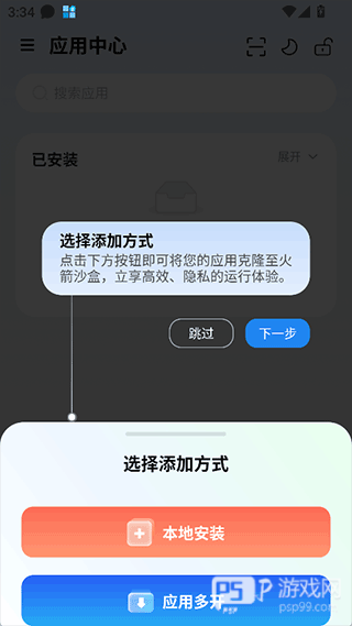 1、添加应用时支持本地安装和应用多开两种方式