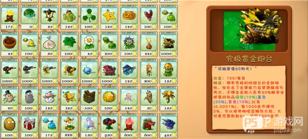 究极系列植物:究极冬笋路障、究极冰神毁灭菇、摇钱三线路灯花、死神土豆地雷、究极流光射手