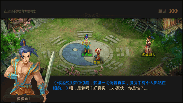 1、运行问道手游官服后,在玩家来到这里后,需要点击对话进行剧情;