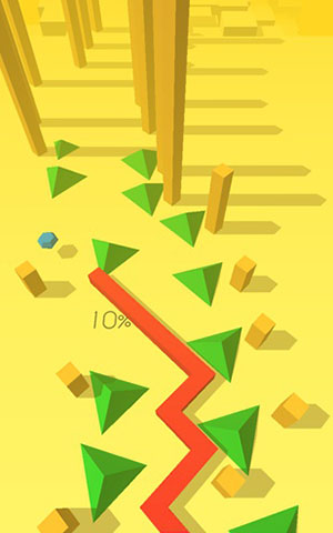 游戏采用了竖版3D建模,呈现给玩家们一场唯美动听而富有文艺气息的画面享受。游戏的画面以简洁为主,我们所控制的线条是方块的立体模样,随着不断的前进,会变得越来越长,而我们所面对的各种障碍都是由棱角分明的方块构成的,这些色彩单一却立体十足的方块造型让整个游戏画面显得更加清晰动人。