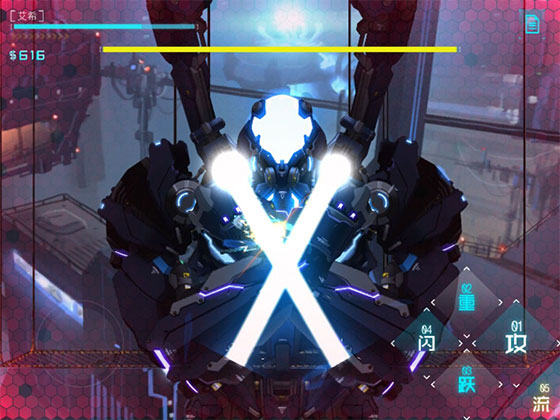 首先是进入计时塔后不久的那个大机甲伊汀,他有四个技能:全屏激光,肩部激光,手部激光和合击拍地,这个boss只有一条血条,可是他的防御力较高,几刀根本砍不了多少血,而且只能跳起来砍他的头才有伤害,再加上旁边两边是没有走廊的,一个不小心,就会掉下去然后掉血…boss的激光打到主角身上很痛,还会有控制击飞的效果,要是操作不当,这一关就很容易卡住。