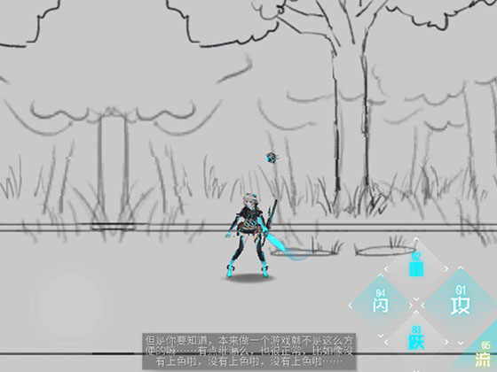 可是!!!用闪避往下三次,就能触发彩蛋的关卡,然后再跳入死水,就能进入另一个区间,可以玩一个小游戏:汐,画风是这样的hhh,这游戏也是真实存在的,有兴趣的玩家可以体验一下。