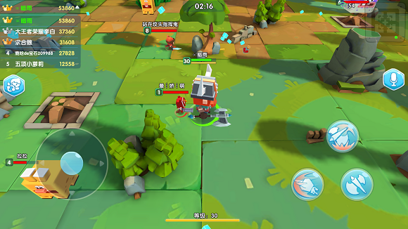 2)地形。草丛、岩石是构成整张地图的主要元素。合理利用草丛伏击敌人、摆脱追杀,是一个高玩的必备技巧。