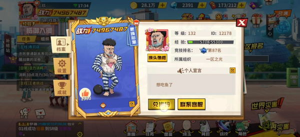 1、打开一拳超人最强之男手游,进入游戏后点击左上角头像;