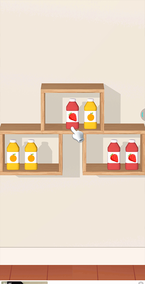 1、在游戏中玩家通过将三个相同的物品移动到一个柜子内即可消除