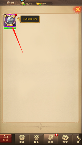 4、点击同伴碎片;
