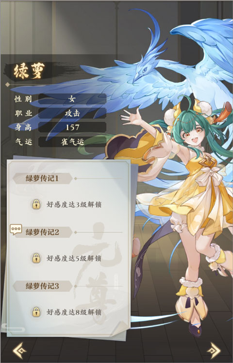 推荐理由:通过与【女性】源师共同上阵激活的列阵缘分,以及不俗的单体输出能力,绿萝可以在大部分体系内担任副C/辅助位置。