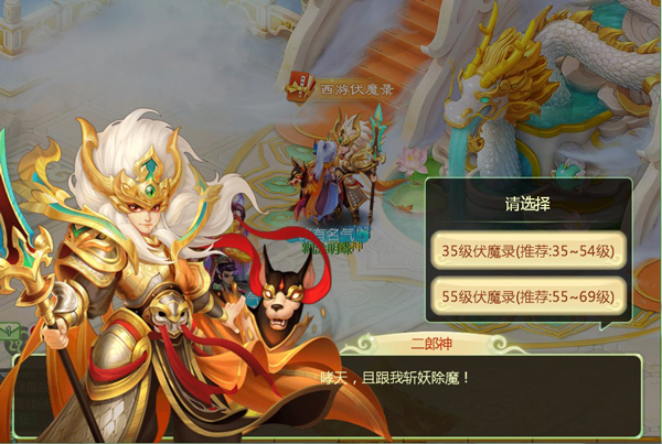 当玩家角色等级达到35级,在凌霄宝殿“二郎神”对话后即可开启伏魔录地图,并根据自身条件,可选择35级伏魔录,55级伏魔录,70级伏魔录和90级伏魔录;