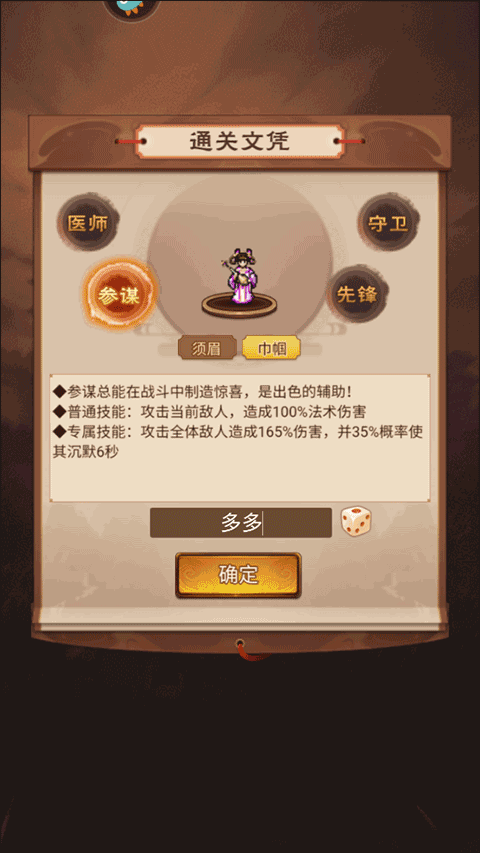 3、这里需要玩家选择自己想要职业,这里展示的是参谋;
