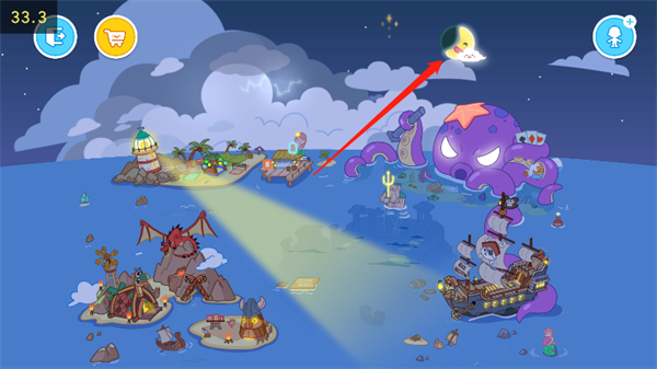 3、选择右上方【月亮】图标,可以随意切换白天和夜晚的场景,