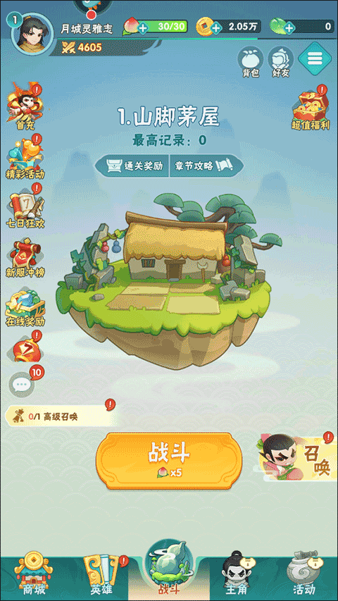 1、打开葫芦娃大作战这款游戏,我们肯定要先完成新手任务,来到游戏的主页面;