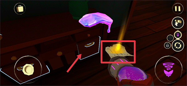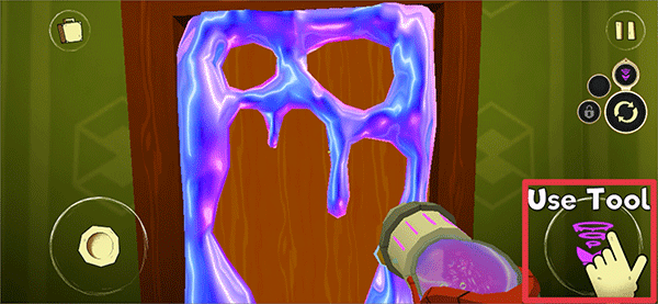 2、电池安装后,将角色移动到门口,并点击Use Tool将粘液吸取,粘液吸取完点击门把手即可出门