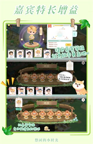 想提升效率就让嘉宾们助你一臂之力吧~获得相应嘉宾碎片,提升嘉宾的特长等级,让其效率提升吧。