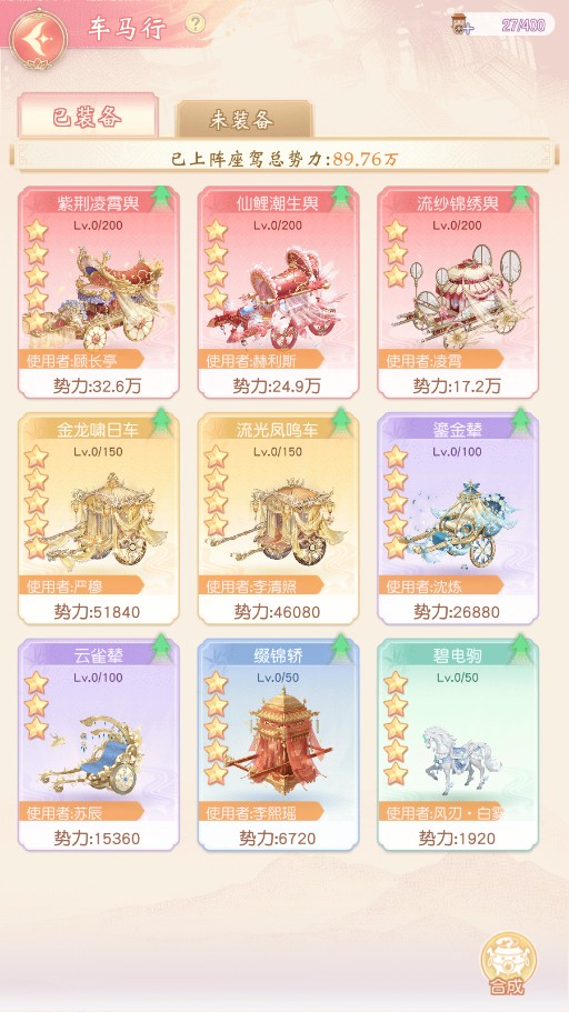 车马行可安置座驾,掌柜可在车马行查看已装备座驾及未装备座驾,同时可由低星座驾合成高星座驾,掌柜需注意只有0级座驾才可进行合成,已升级座驾可免费重置。