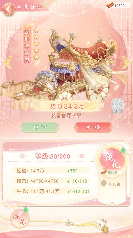 掌柜还可强化座驾和进行洗练,可提升配备该座驾伙伴的势力值,座驾强化到30级解锁洗练功能,洗练可直接提升座驾的百分比属性。