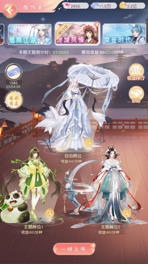 服饰展内有多个展位主题,每个主题下掌柜可从符合主题的服装套装中选择3套服装进行展示,一次只能举行一个主题的展览,并获得收益。