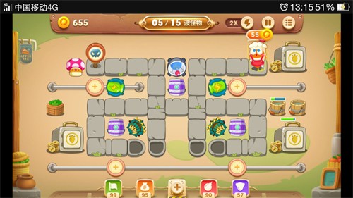 关卡介绍:集市主题中第59关为第二章的倒数第二关。可以使用的炮塔有:瓶子炮、火箭、多重箭、毒气桶、回旋镖。