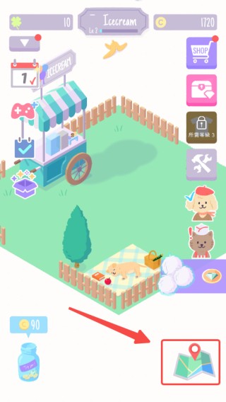 1、进入游戏,点击右下角的地图;