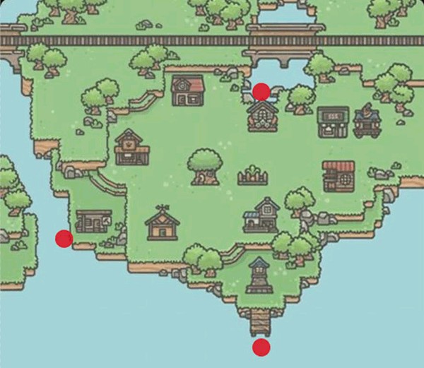 1、村里有三个钓鱼点:码头、冬安店旁边、萝丝的店旁边。