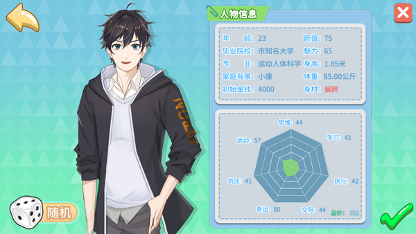 重要性:运动大于学习大于交际(之后统称“三维”),其他属性都和打牌有关没什么么用